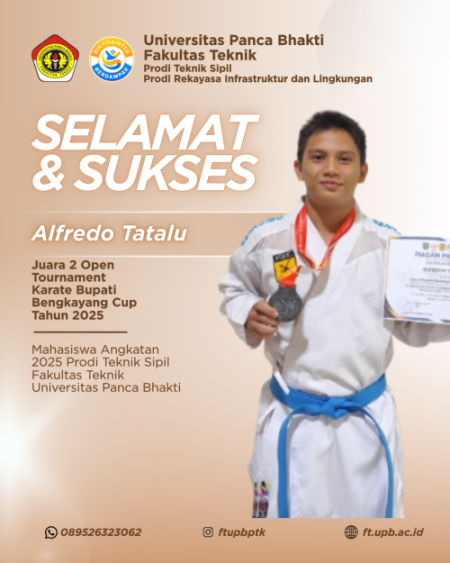 Selamat dan Sukses untuk Alfredo Tatalu NIM 2510212868 dari Prodi Teknik Sipil Sebagai Juara 2 Open Tournament Karate Bupati Bengkayang Cup Tahun 2025